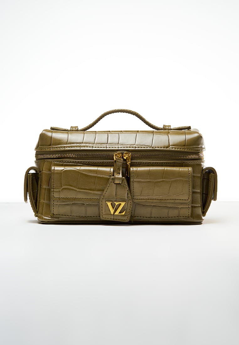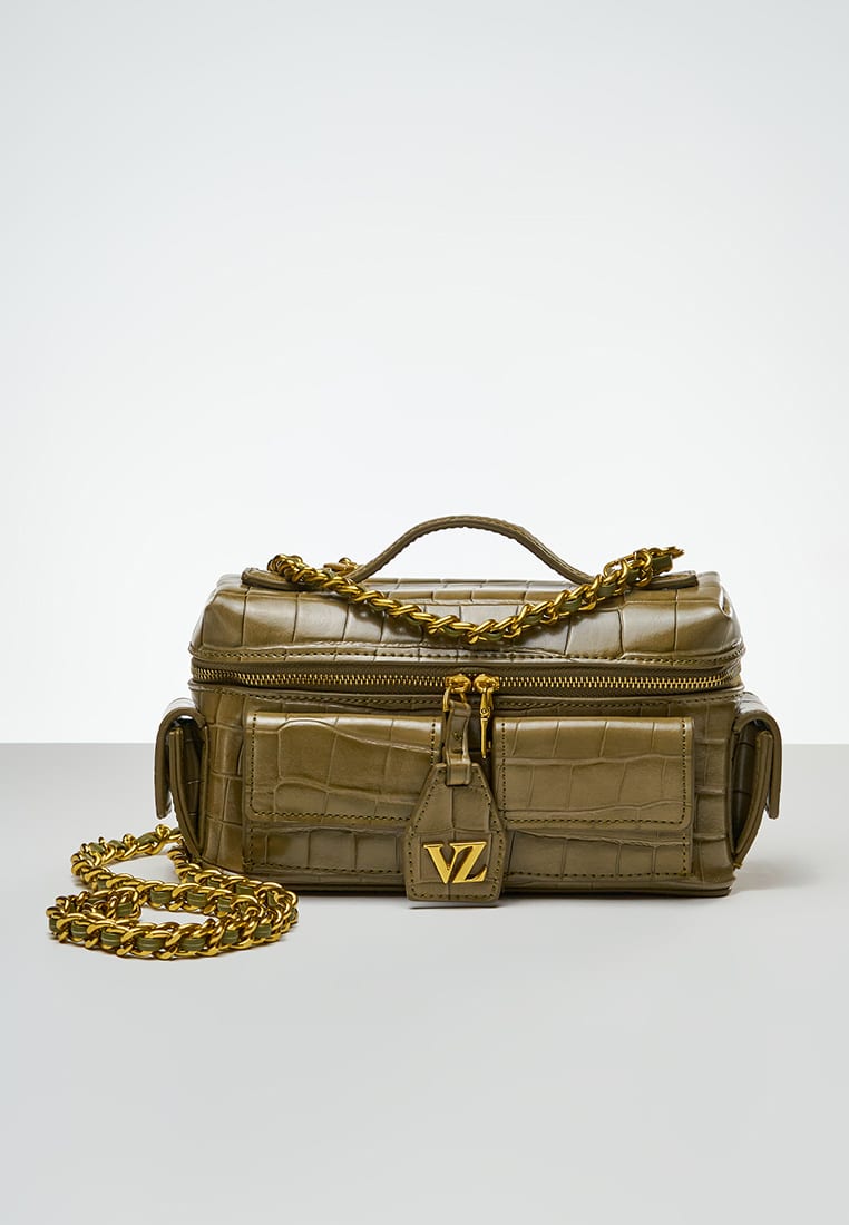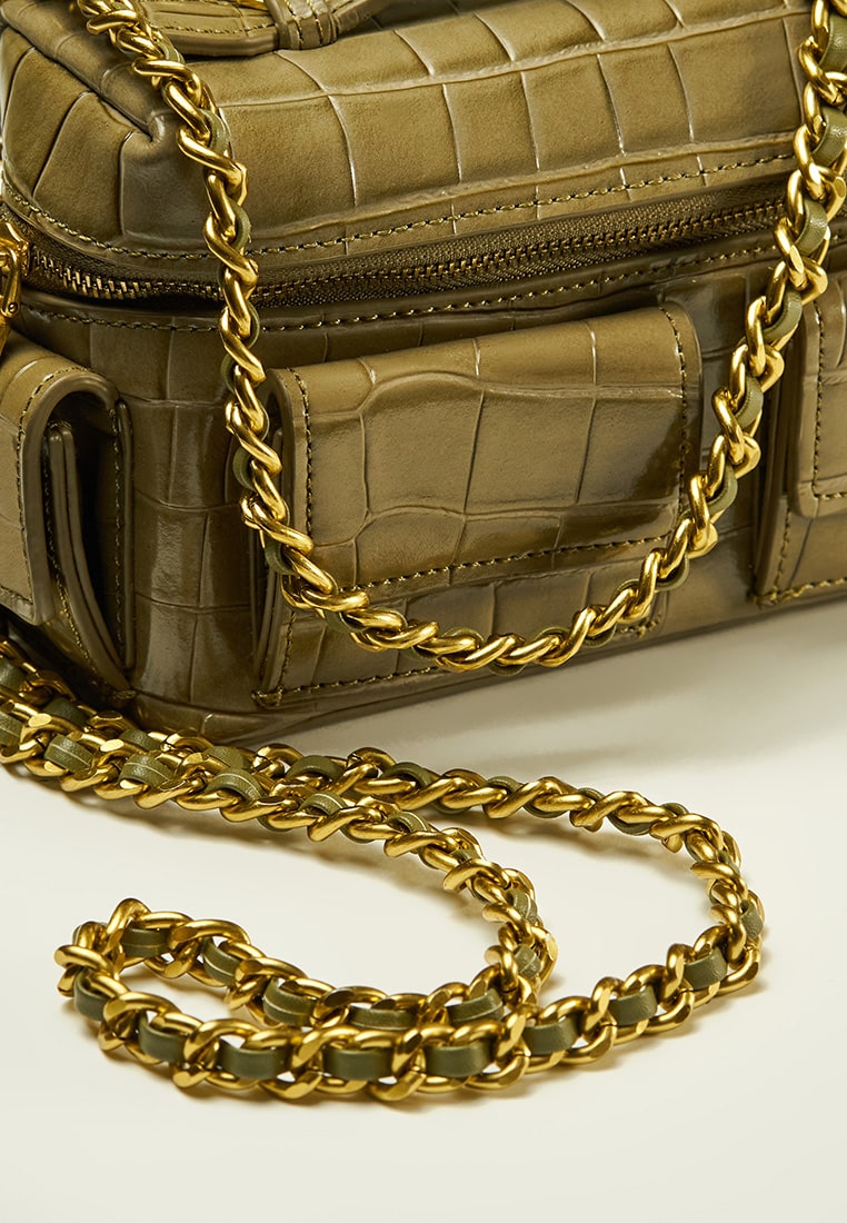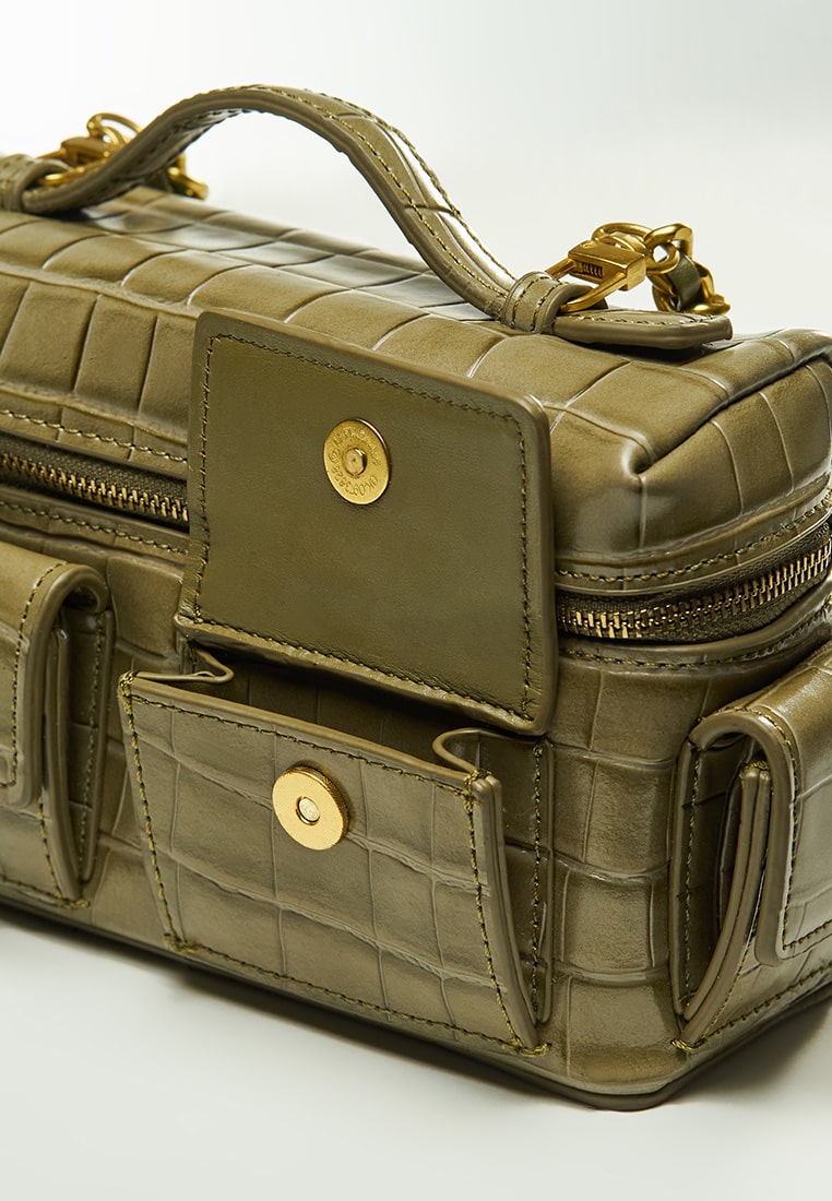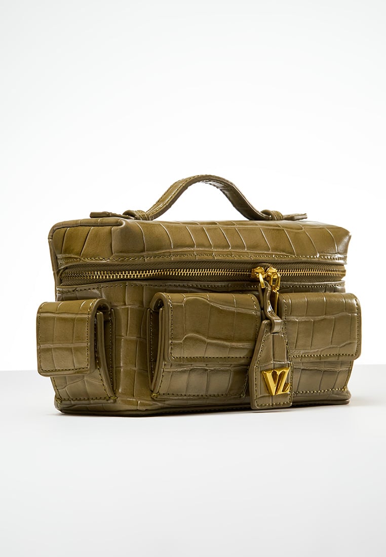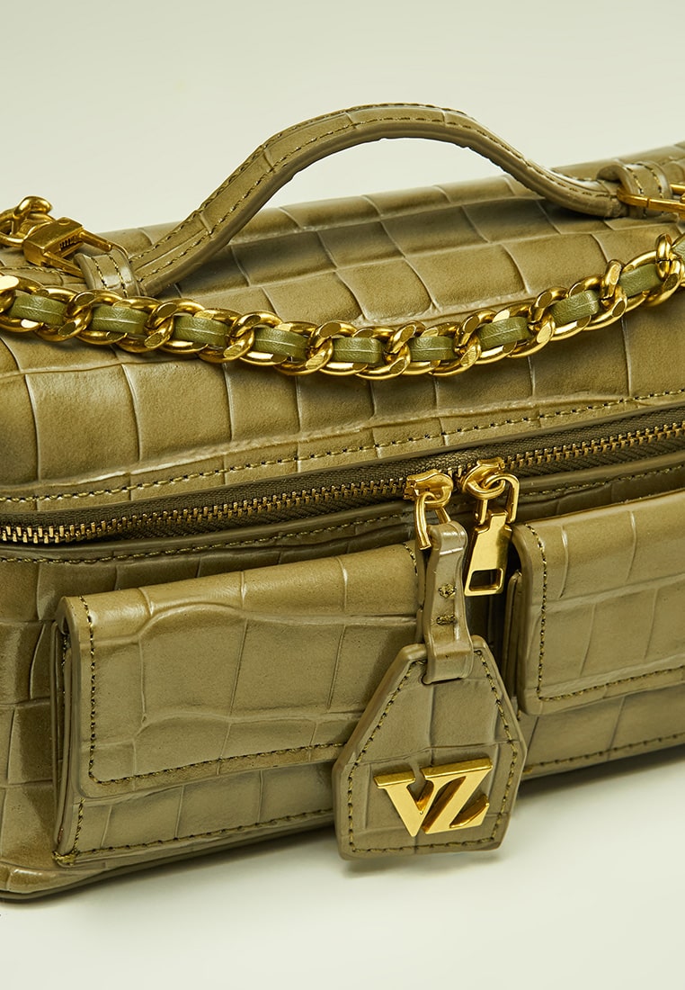 Color : Aloe Material : Leather Croco Texture Size : 20cm × 7cm x 11,5cm
