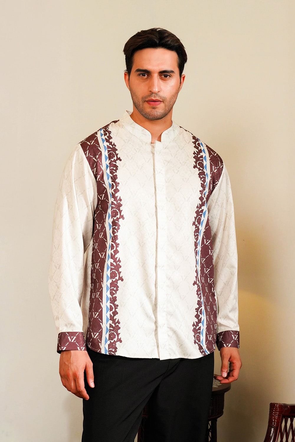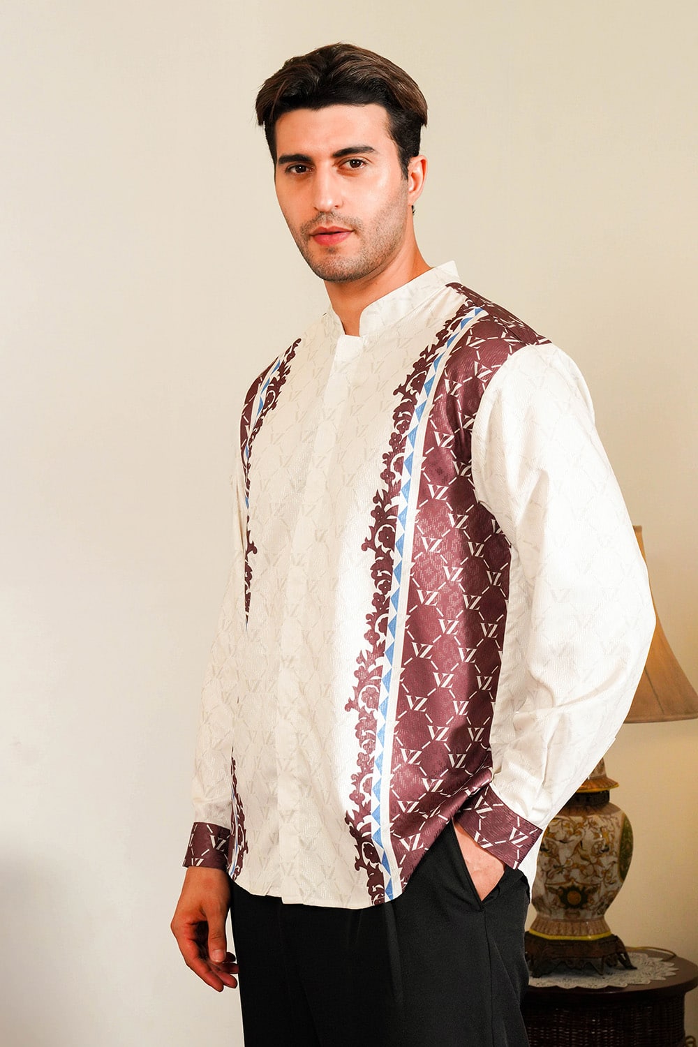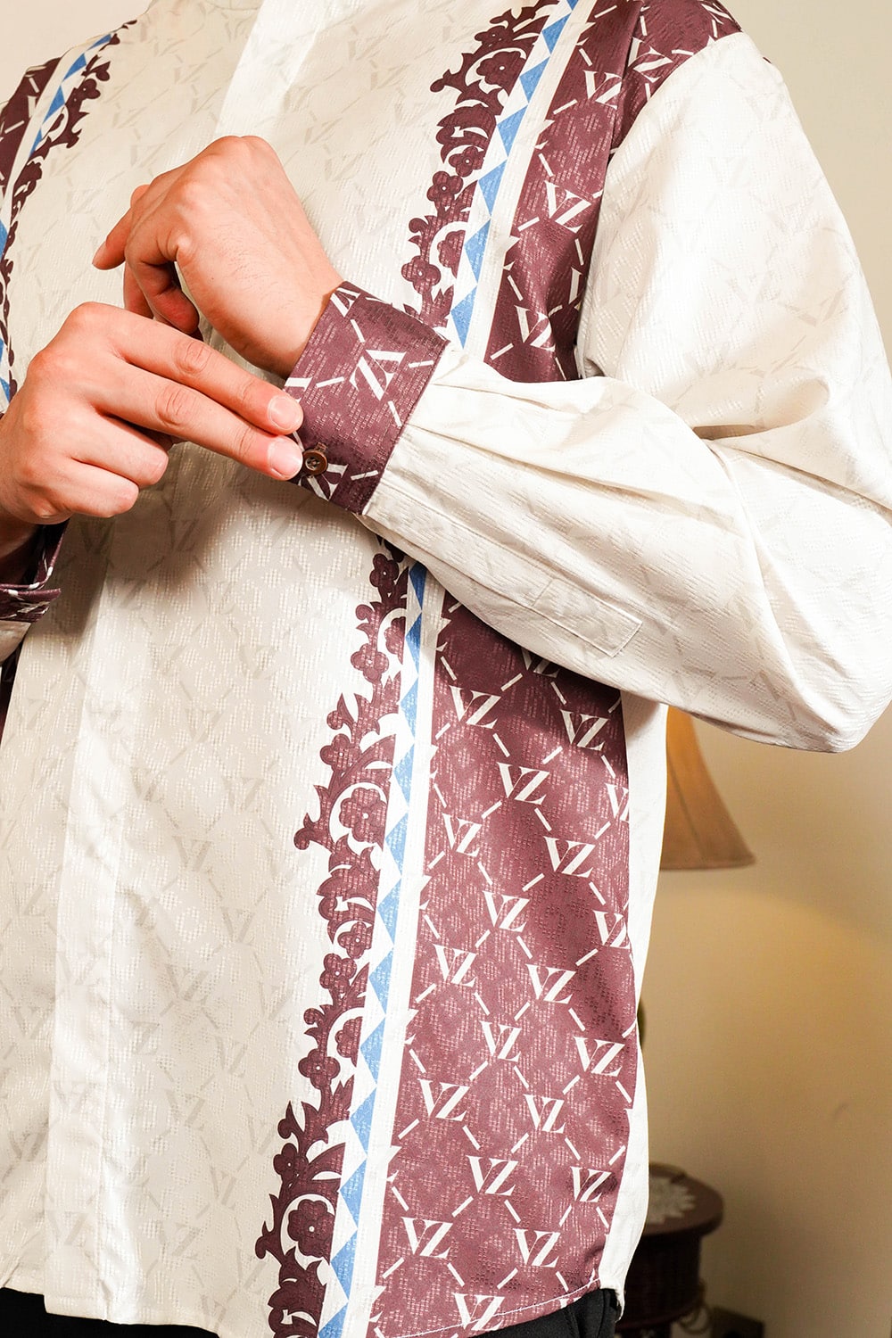 VZ Clemyra Long Shirt is crafted from premium baby peach fabric that feels soft, breathable, and comfortable for all-day wear. Detailed with VZ signature patterns, this long shirt embodies timeless masculinity, calm, confident, and effortlessly refined.