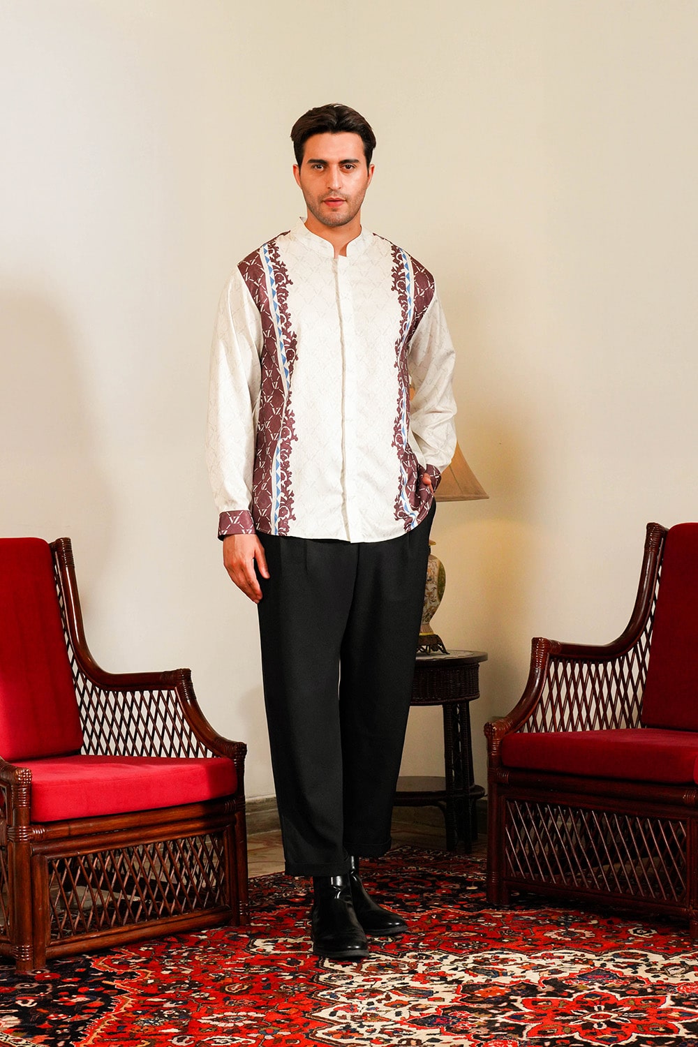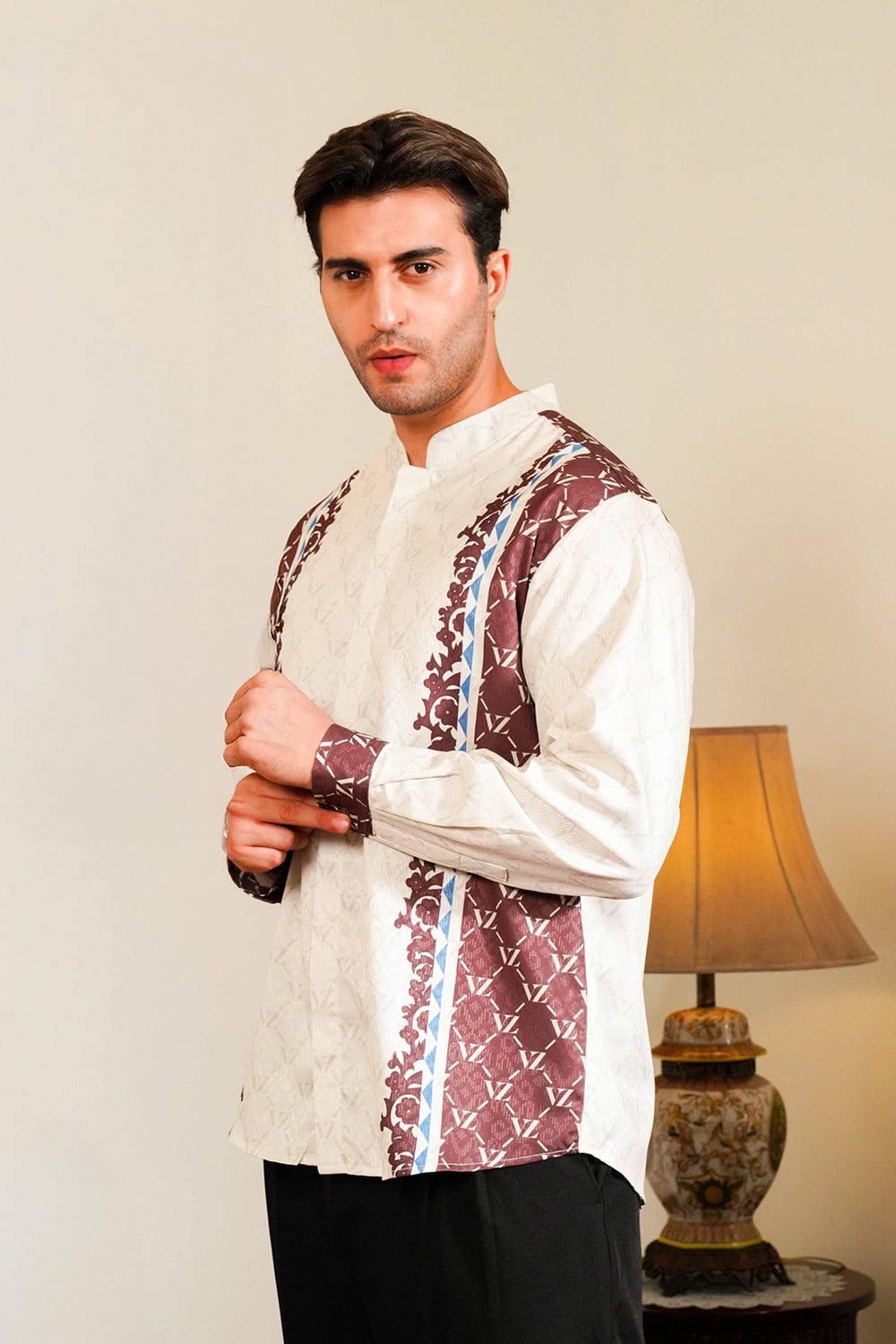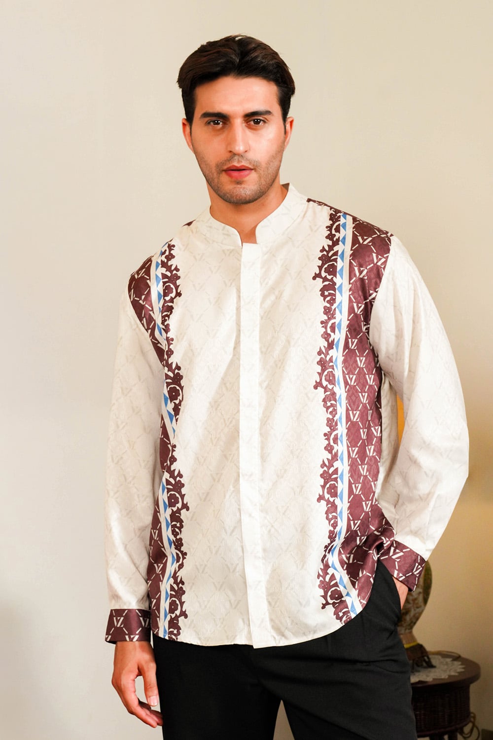 VZ Clemyra Long Shirt is crafted from premium baby peach fabric that feels soft, breathable, and comfortable for all-day wear. Detailed with VZ signature patterns, this long shirt embodies timeless masculinity, calm, confident, and effortlessly refined.